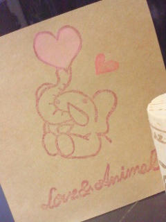 今までの動物たちは手でハートをもっていましたが、ゾウはちょっとデザインを変えてみました。