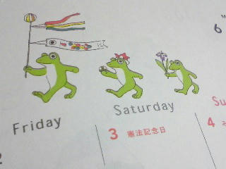 このカエルは今年買ったスケジュール帳に描かれているものを拝借~。