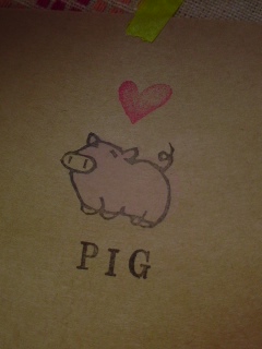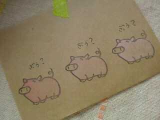 図案を考えていて、何気なく描いたブタちゃんをハンコにしてみました。