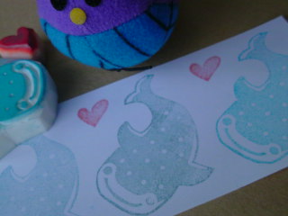 そのお土産の包装紙に描かれてたサメ・・・?をハンコにしてみました。